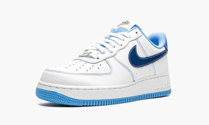 White/blue calf leather 1 ’07 sneakers from featuring signature Swoosh logo detail, silver-tone logo plaque, contrasting heel counter, round toe, front lace-up fastening, logo patch at the tongue, branded insole and rubber sole. These styles are supplied by a premium sneaker marketplace. Stocking only the most sought-after footwear, they source and curate some of the most hard to find sneakers from around the world..