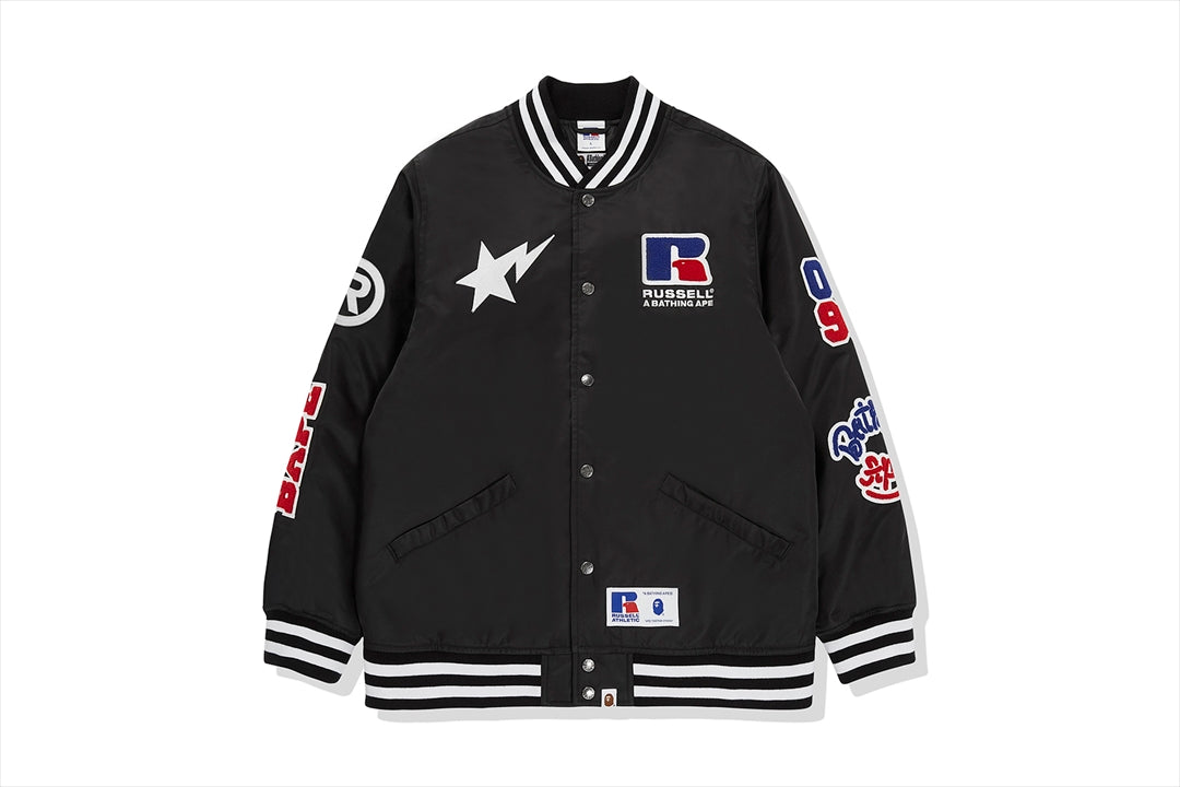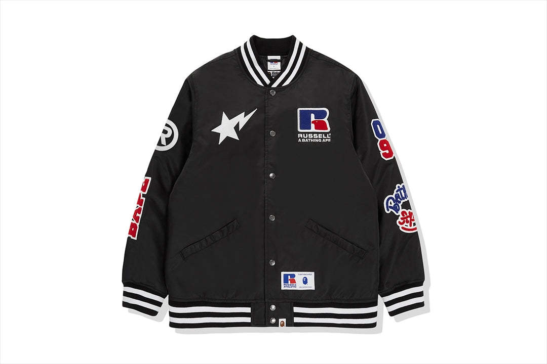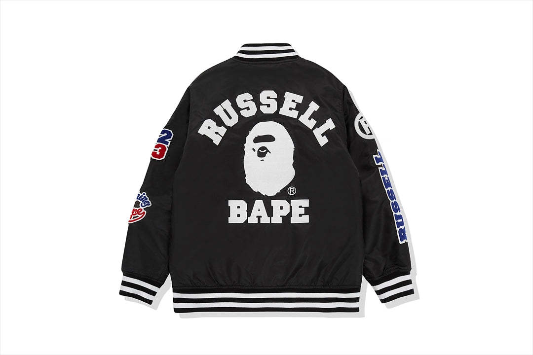 This collection strongly reflects 80's hip-hop and skate culture. It combines the classic sports elements of RUSELL ATHLETIC with BAthtPE's iconic street culture DNA. An item with COLLEGE on the back and various motifs on the sleeves.