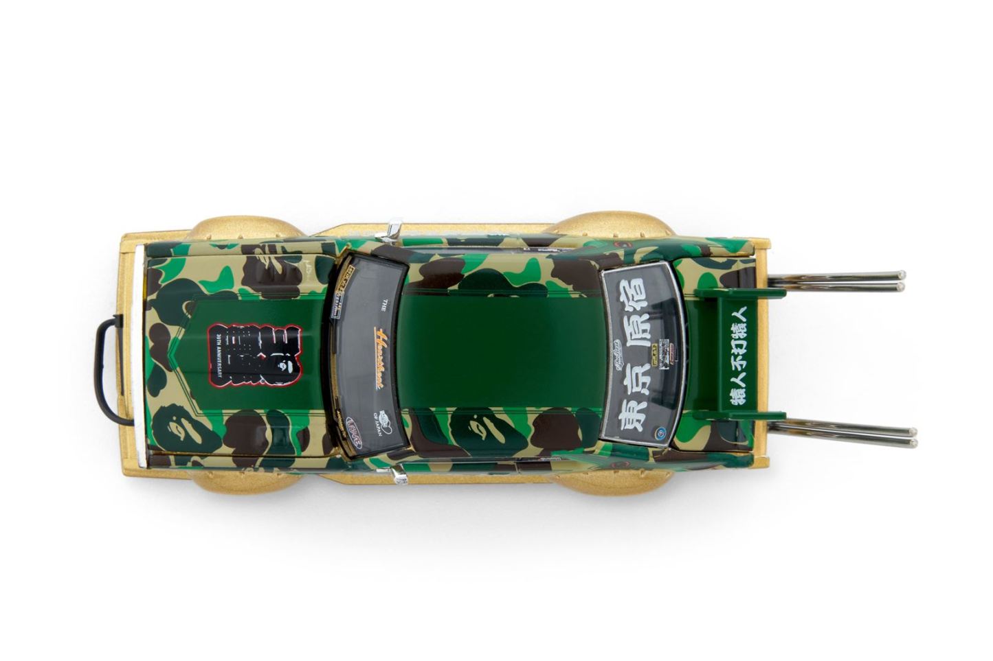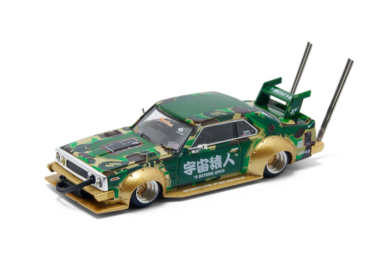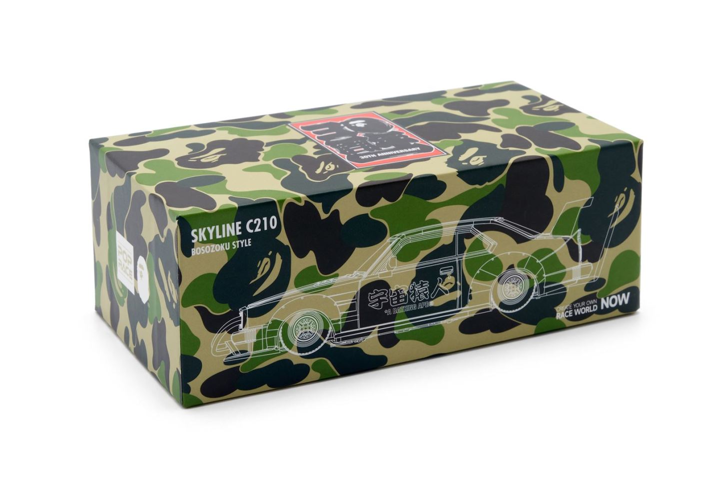 We have teamed up again with POP RACE, which achieved success in collaboration with Aston Martin GT3, to realize a new collaboration. This collaboration features a Skyline C210 minicar that has been customized with inspiration from the Japanese subculture "Bosozoku." Based on the signature ABC CAMO, it incorporates designs that are faithful to the culture, such as the 30th anniversary logo and calligraphy slogan. The unique design of the car and the pop design of harmonize to create a unique presence. This model car is made using die-cast materials and is made with attention to detail. Advanced printing technology creates an exquisite finish that is hard to believe is a model car. A gem recommended not only for fans but also for collectors.