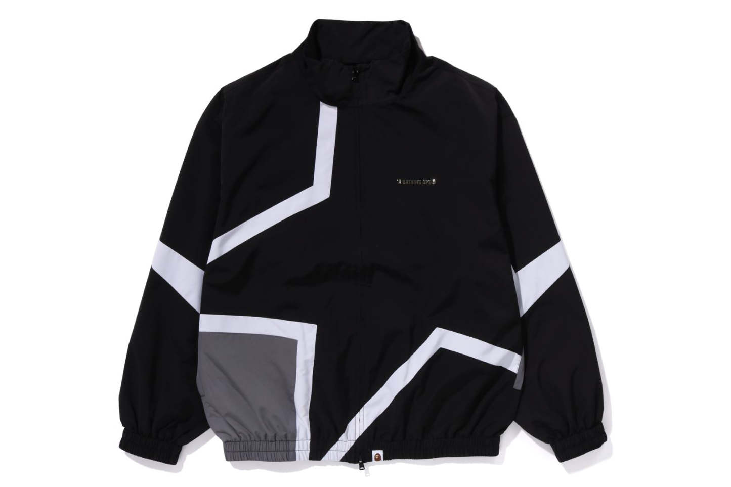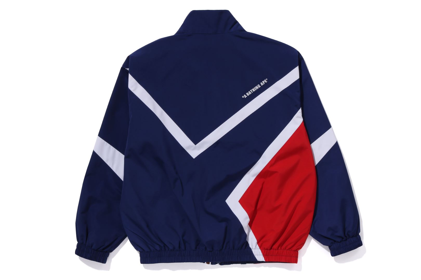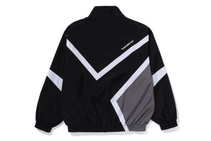 A track jacket made of polyester material with a crisp and slightly glossy feel. A design with a switching color scheme with an outline that looks like a star on the body. A metal plate with the brand name on the left chest, slash pockets on both hips, a piss name in the center of the hem, and a rubber print of the brand name on the back right shoulder. Both sleeves and hem have rubber ribs, and the front has a double zip with an original metal charm. A silhouette with a relaxed fit. Available in 2 colors and 5 sizes.