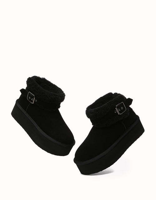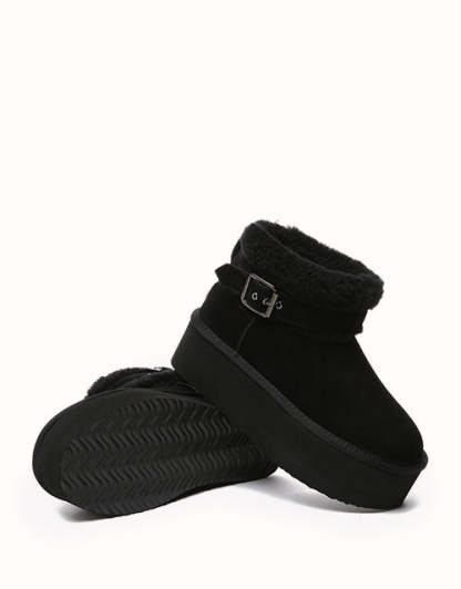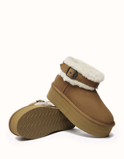 Voici l'incarnation du confort et du style : les bottines à plateforme EVEthtRAU Ula. Dotées d'une boucle métallique, elles s'ajustent à votre pointure et rehaussent instantanément votre look. Disponibles en marron et noir, ces bottines à plateforme s'associent parfaitement à un jean ou à des vêtements de sport, tout en garantissant une chaleur optimale grâce à leur laine de mouton de haute qualité.