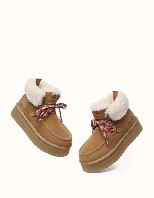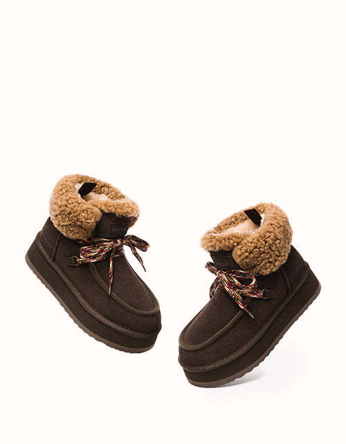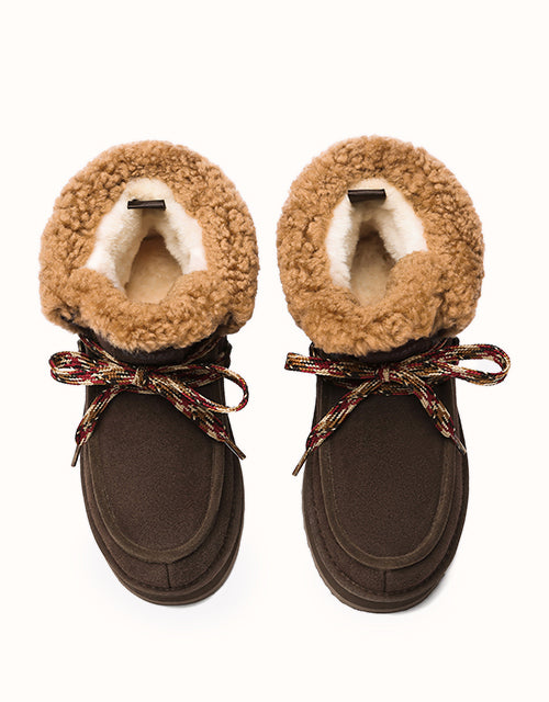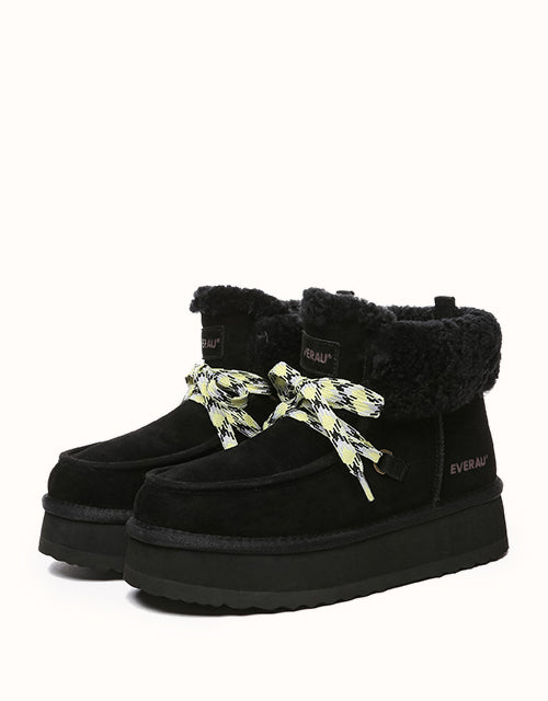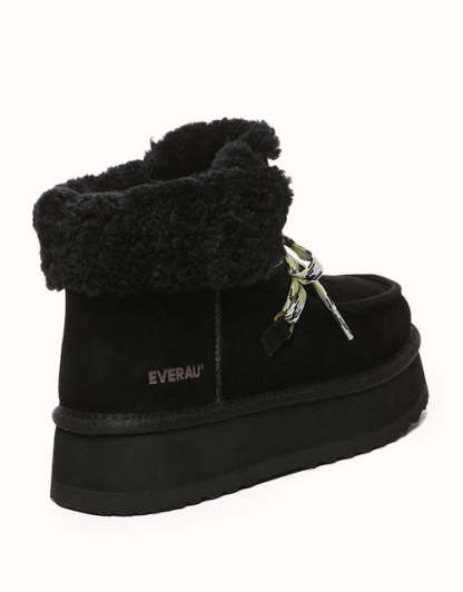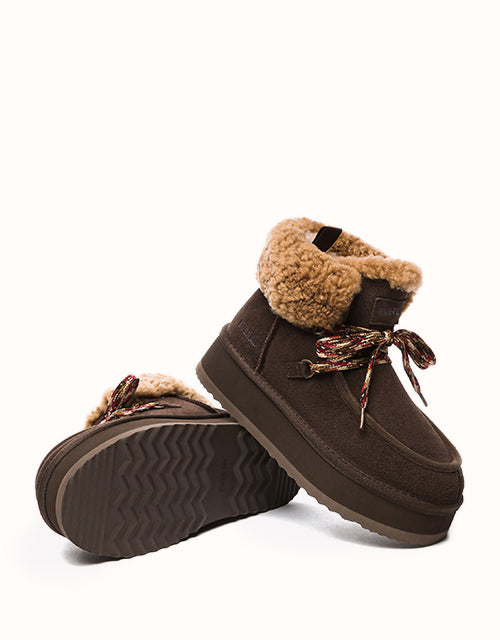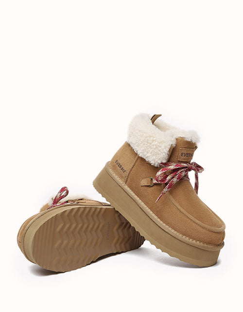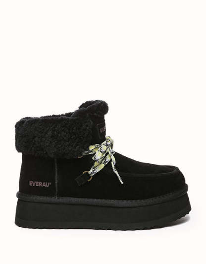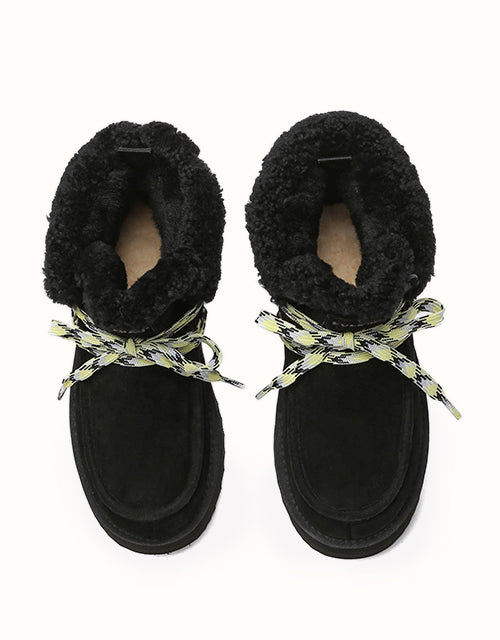 Restez confortable et élégante avec ces bottes au design chic en polaire retournée et à lacets tissés colorés. Doublées de laine mérinos australienne pour plus de chaleur et de confort, elles sont également dotées de daim de vache déperlant et d'une semelle plateforme légère en EVA pour plus de durabilité et un amorti optimal. Fonctionnelles et tendance, ces bottes sont un indispensable de l'hiver, parfaites pour les aventures hivernales.