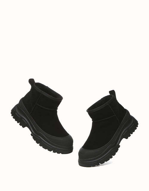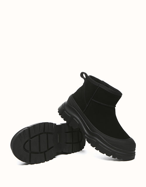 Découvrez le confort à chaque pas avec les bottes à plateforme épaisse EVEthtRAU Mouni. Disponibles en plusieurs coloris pour s'adapter à votre style et à vos tenues, ces bottes sont conçues pour vous offrir un confort optimal tout en ajoutant une touche de sophistication grâce à leur design intemporel et leurs semelles épaisses. Dotées d'une structure durable pour une excellente adhérence au sol et doublées d'une luxueuse peau de mouton, elles offrent une chaleur exceptionnelle par temps frais.