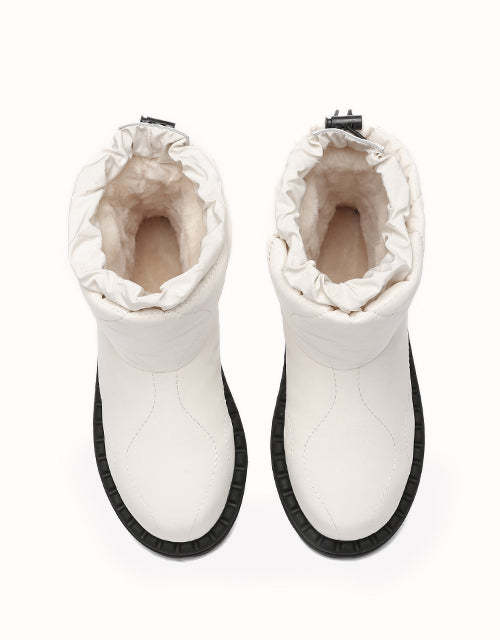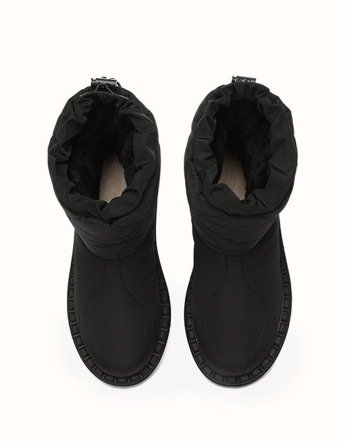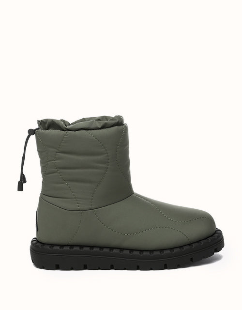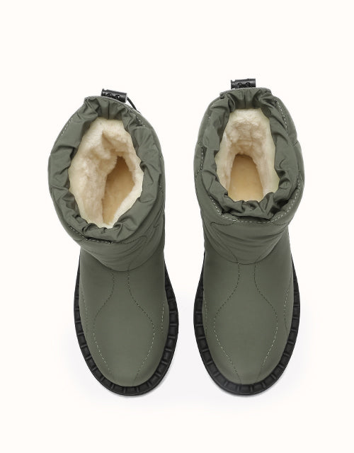 Alliant style et confort, ces bottes sont dotées d'une tige en tissu parapluie doux et d'une conception matelassée tendance. Doublées de laine mérinos autrichienne de première qualité pour plus de chaleur et un confort évacuant l'humidité, elles sont également dotées d'un cordon de serrage réglable pour une protection coupe-vent. La semelle extérieure en TPR durable assure adhérence et maintien, ce qui les rend parfaites pour l'extérieur et le quotidien.