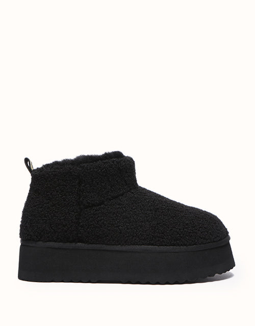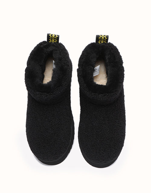 La tige en polaire Teddy tendance, doublée de laine mérinos australienne de première qualité, offre une chaleur exceptionnelle, évacue l'humidité et offre une coupe confortable et douce pour la peau. La semelle plateforme légère en EVA ajoute de la hauteur et du rebond, tout en offrant une durabilité et une flexibilité exceptionnelles. Ces bottes offrent un look luxueux et tendance, sublimé par de riches teintes automne-hiver. Parfaites pour adopter l'ambiance décontractée de la saison avec une démarche audacieuse et assurée.
