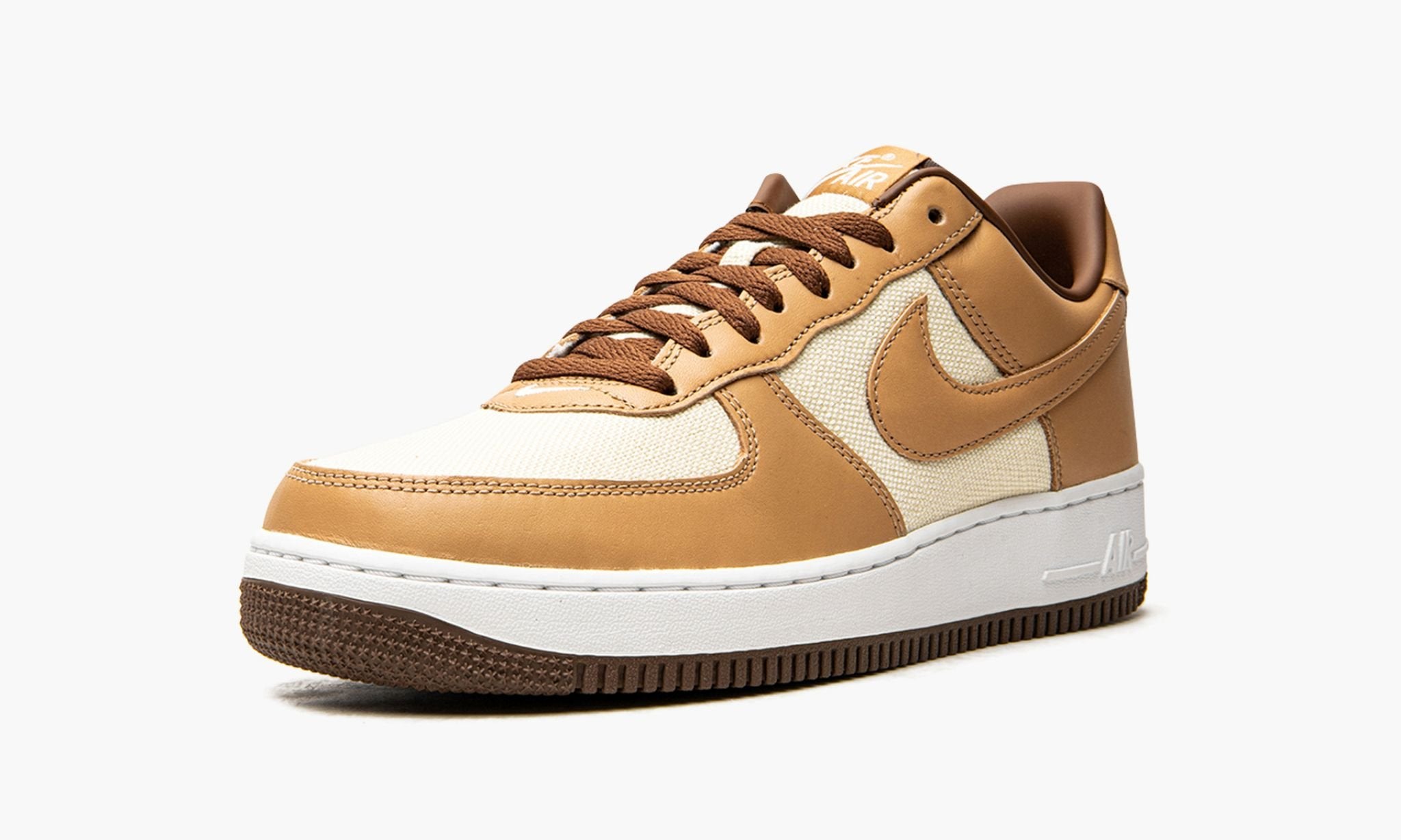 The 1 Low 閳ユ穾corn閳?is an April 2021 re-release of the colorway that originally debuted all the way back in 2002. A rare 1 design, the 閳ユ穾corn閳?looks even at-home in today閳ユ獨 zeitgeist of casual, neutral based lifestyle colorways than when it first appeared on shelves in the early 2000s. Buttery caramel colored leather panels grace the model閳ユ獨 forefoot, eyelets, collar, heel, and Swoosh. A contrasting tan canvas material forms the base. Cream colored 閳?Air閳?detailing is embroidered on the heel and printed on the brown nylon tongue tag. The same shade of natural canvas that appears on the base also graces the tongue. The shoelaces, inner lining, and outsole are cast in a rich dark brown hue. A white rubber midsole completes the look. Release date: April 29, 2021.