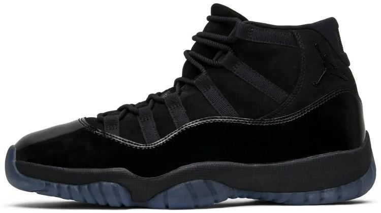 First teased in 2011 as a sample from the Air Blackout Collection . the Air 11 Retro 'Cap and Gown' was finally made available to the public in 2018. The name refers its formal look . designed to be worn for occasions such as graduation ceremonies閳ユ攰ts laces are even inspired by graduation cords. The all-black model features a patent leather and premium nubuck upper atop an icy blue outsole.