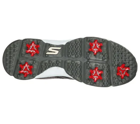 Put on your best game with Skecththers GO GOLF® Jasmine. This golf design features a smooth synthetic duraleather upper with a Skecththers Goga Max comfort insole with replaceable Softspikes®, lightweight ULTRA GO® cushioning and waterproof protection.