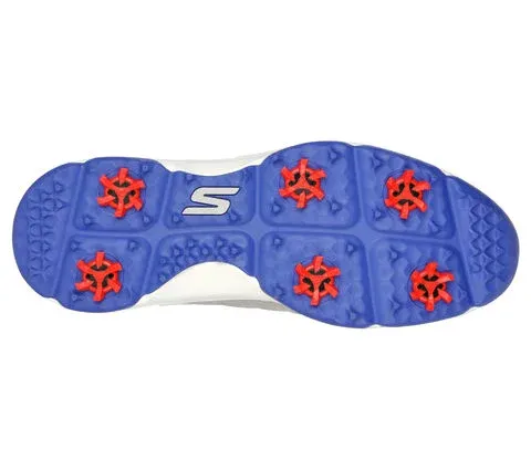 Handle the course in supportive comfort and smooth style with Skecththers GO GOLF® Elite 5 - GF. This waterproof lace-up golf design features a quarter embossed synthetic upper with a removable Arch Fit® insole and lightweight ULTRA FLIGHT® cushioning.
