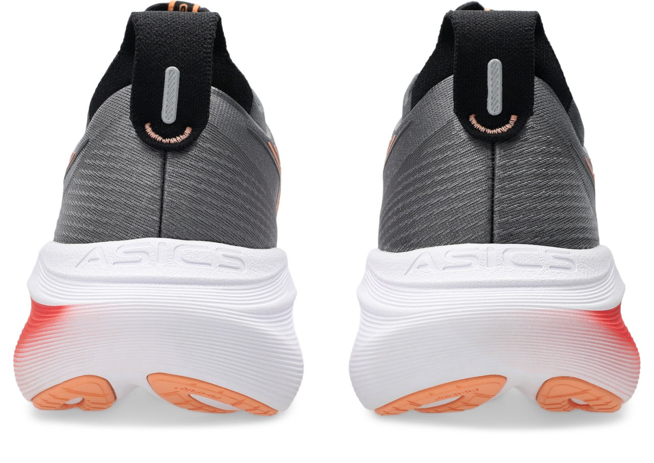 The GEL-NIMBUS? 27 shoe's soft cushioning properties help you feel like you're landing on clouds. This design is revamped to help create a softer and smoother running experience.?A soft engineered jacquard mesh upper comfortably wraps your foot while supplying advanced ventilation. Additionally, the knit tongue and collar help provide a soft and supportive feel.?By using FF BLAST? PLUS ECO cushioning, this trainer creates a lighter and softer cushioning experience.?Lastly, HYBRID GRIP? outsole rubber helps create better traction, improved softness, and advanced durability.