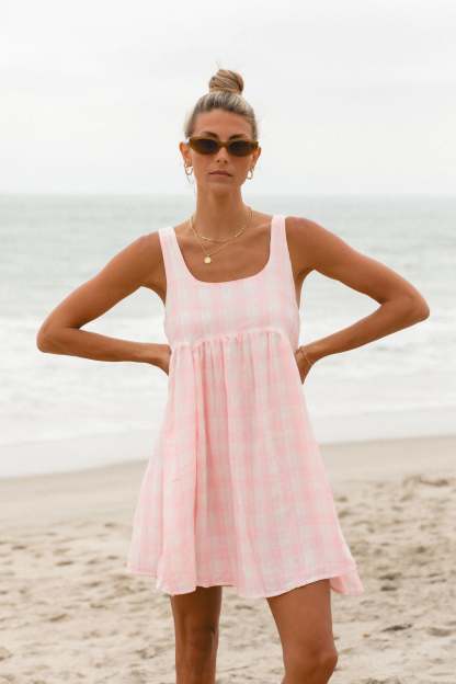 Its sweet pink gingham pattern exudes charm and the flowy fabric adds an effortless touch. Perfect for a causal summer outing, this dress is a versatile addition to your wardrobe.